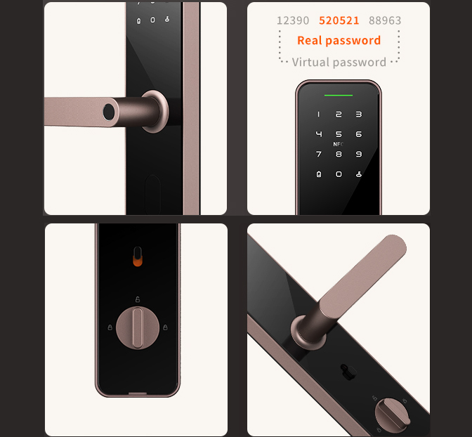 6 Unlocking Modes: Fingerprint, PIN, App (Bluetooth), Mechanical Key, Temporary PIN, NFC Card.